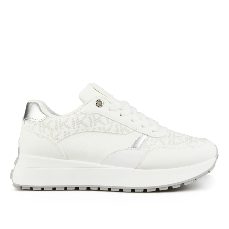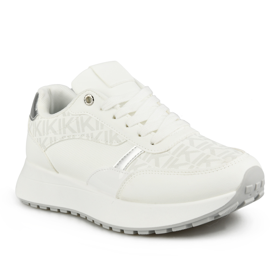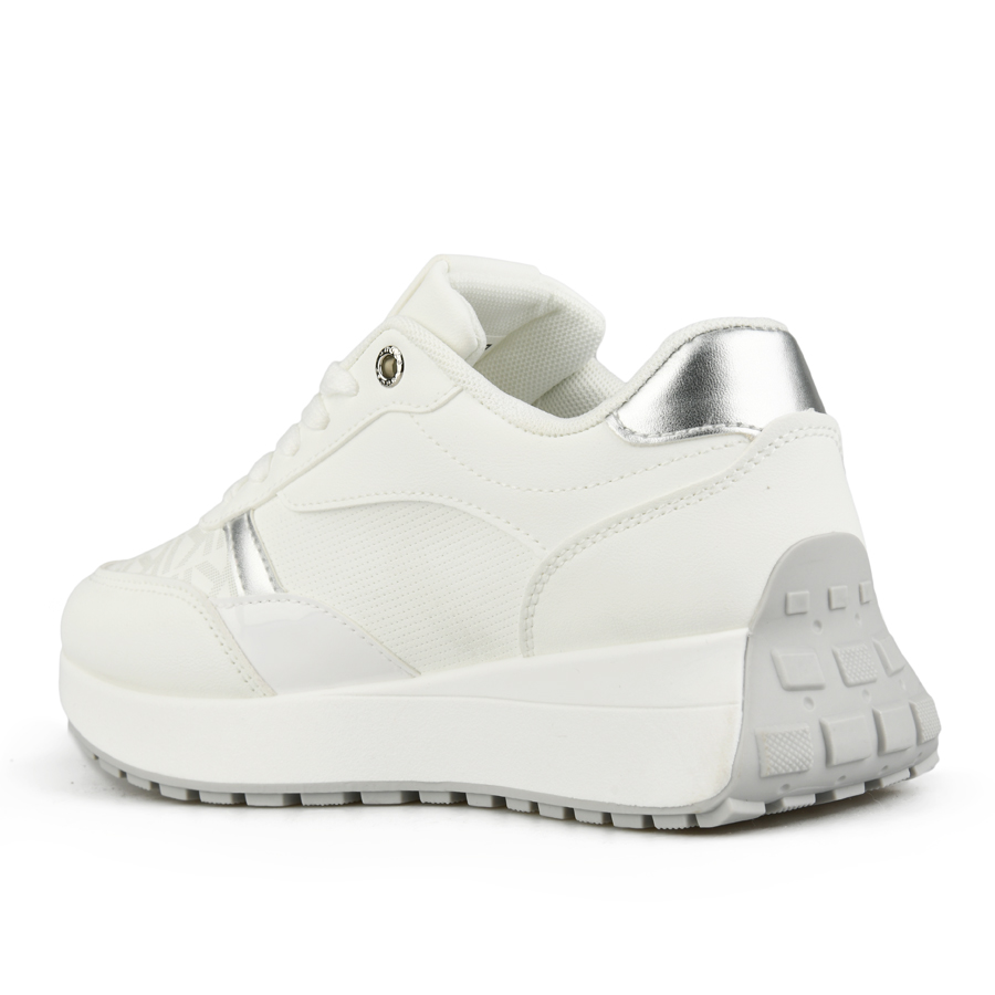 Γυναικεία δετά sneakers, σε λευκό χρώμα, από οικολογικό δέρμα και υφασμάτινη επένδυση.